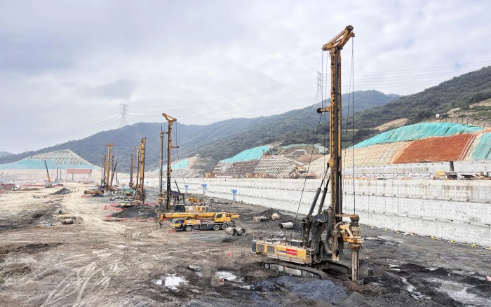 项目场地属软土地基且临近地铁5号线前海公园站,紧贴车站C出口主体结构,施工难度大,现场使用徐工旋挖设备11台,自进场以来,旋挖钻机群相当“给力” 金牌影院,保证项目按照施工节点顺利推进。