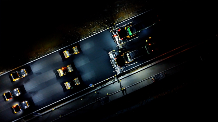 施工中,徐工依托多元感知技术实现工况实时监测,智能决策系统动态调配资源 金牌影院在线观看,精准控制技术保障摊铺压实毫米级精度,无人驾驶摊压设备,智能压实,协同作业,24 小时连续施工无间断,较传统模式效率提升25%,能耗降低15%。