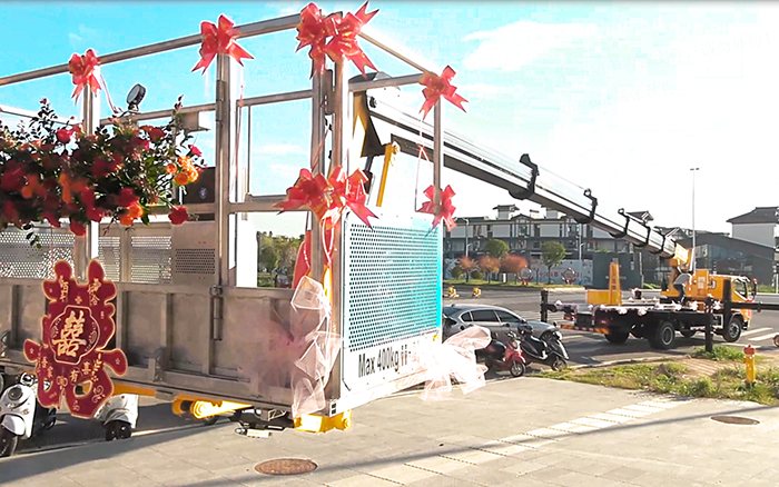 这辆 GKS45A 高空作业车刚完成交付 金牌影院在线观看,客户便别出心裁地将其打造成婚车,车头的 “囍” 字鲜艳夺目,车身缠绕的红绸与花束将机械的硬朗感与婚礼的浪漫感巧妙融合,在喜庆的音乐与路人的祝福中,它行驶在婚车队列之首,成为新人幸福旅程的 “硬核” 见证者。