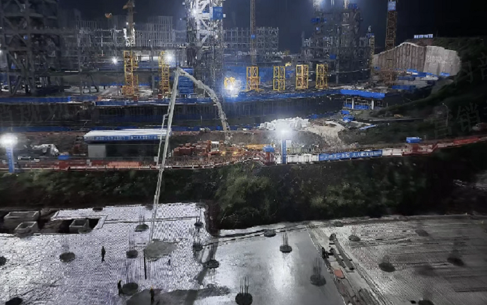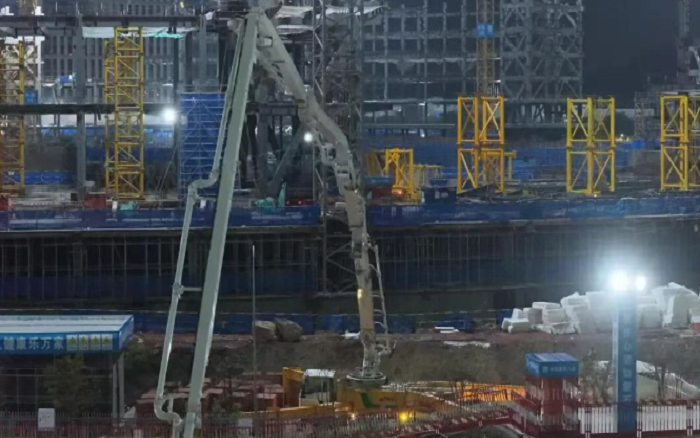凌晨三点的重庆两江新区,徐工72米泵车展臂高空,20辆新能源搅拌车穿梭往来—这不是科幻电影场景 金牌影院,而是徐工混凝土成套化装备助建重庆赛力斯全球汽车公园的火热夜战场面。
