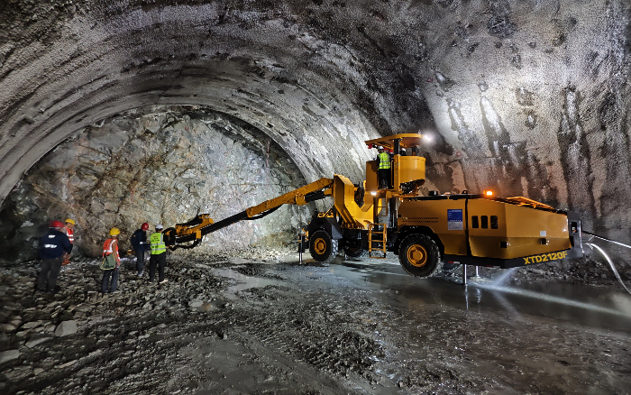 徐工XTD2120F凿岩台车凭借先进的电液控制,实现多臂协同,精准钻进 金牌影视资源,大幅降低人工作业风险,全力保障项目高效推进。