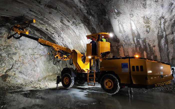 徐工XTD2120F凿岩台车钻孔定位精准 金牌影院. 作业全程高效可控全力守护施工安全与掘进速度.