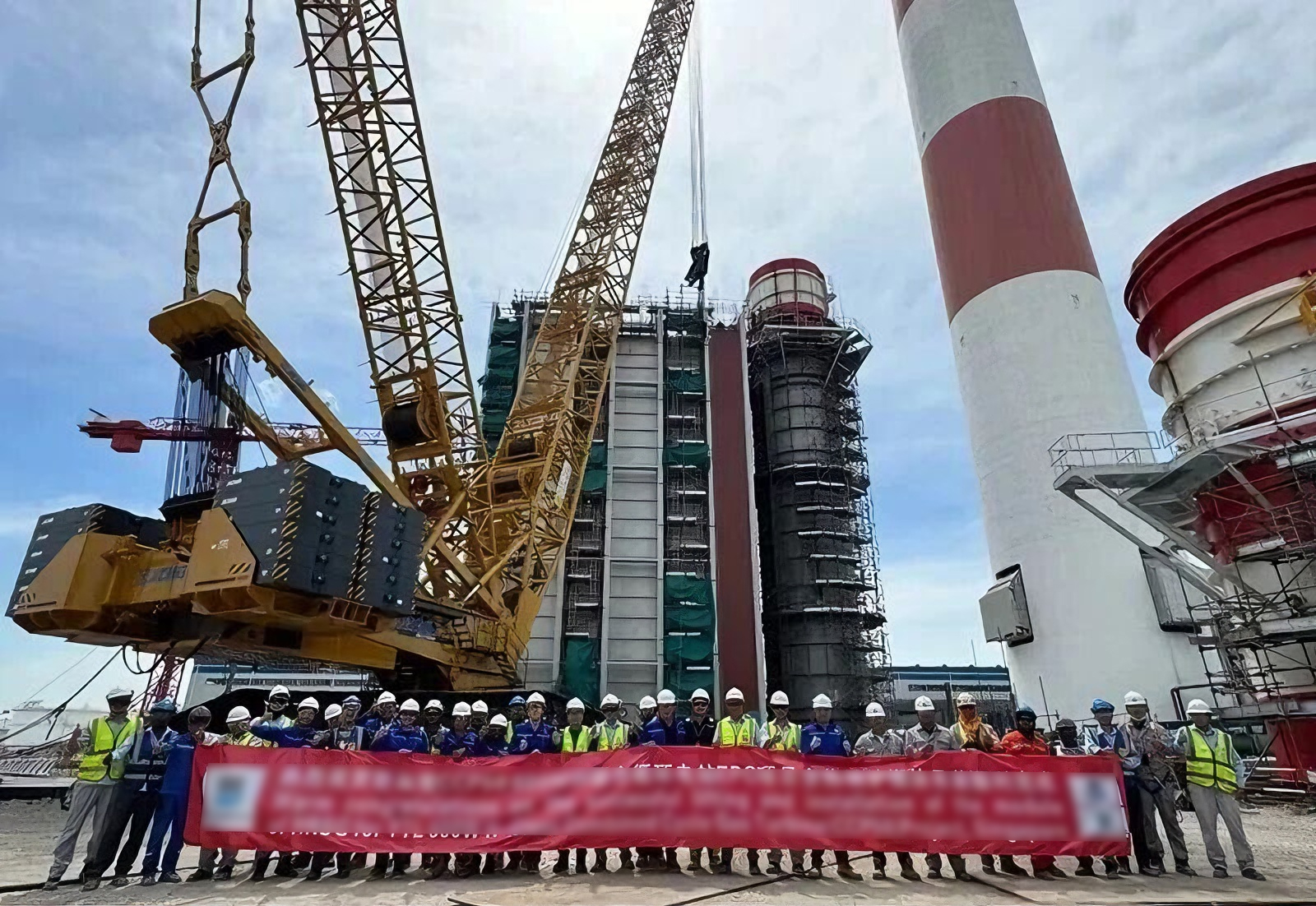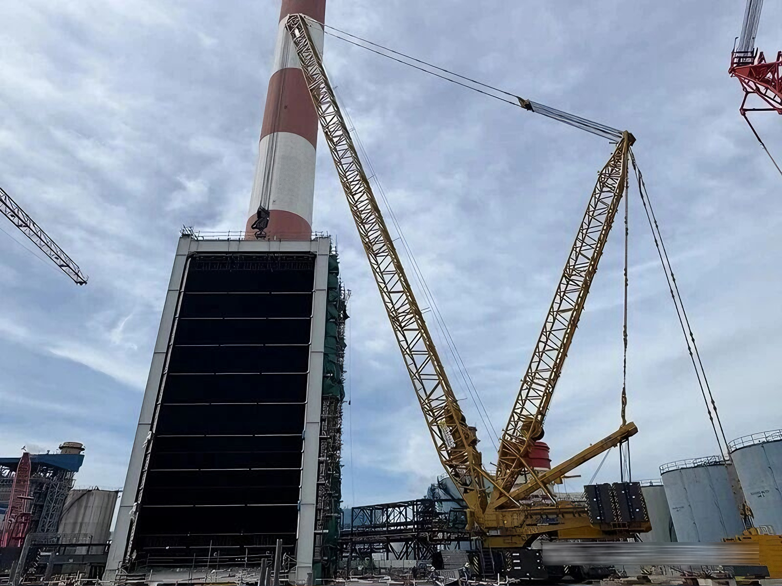 近日 金牌影院,在东南亚600兆瓦联合循环电站项目建设现场,徐工XGC16000(1250吨级)履带起重机圆满完成余热锅炉全部受热面模块的吊装任务。