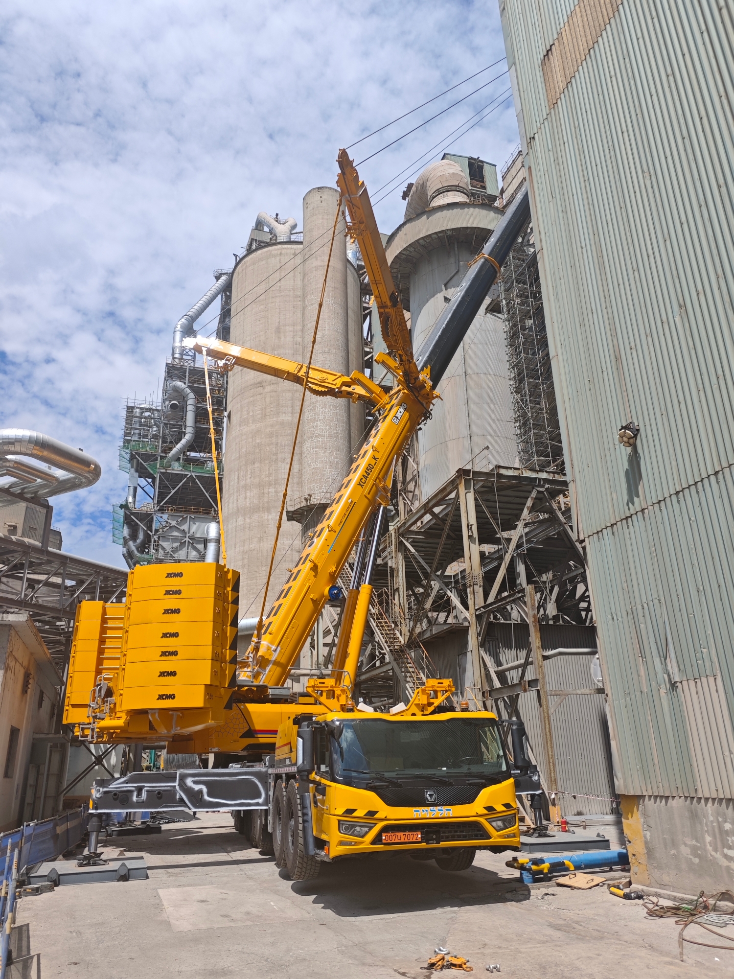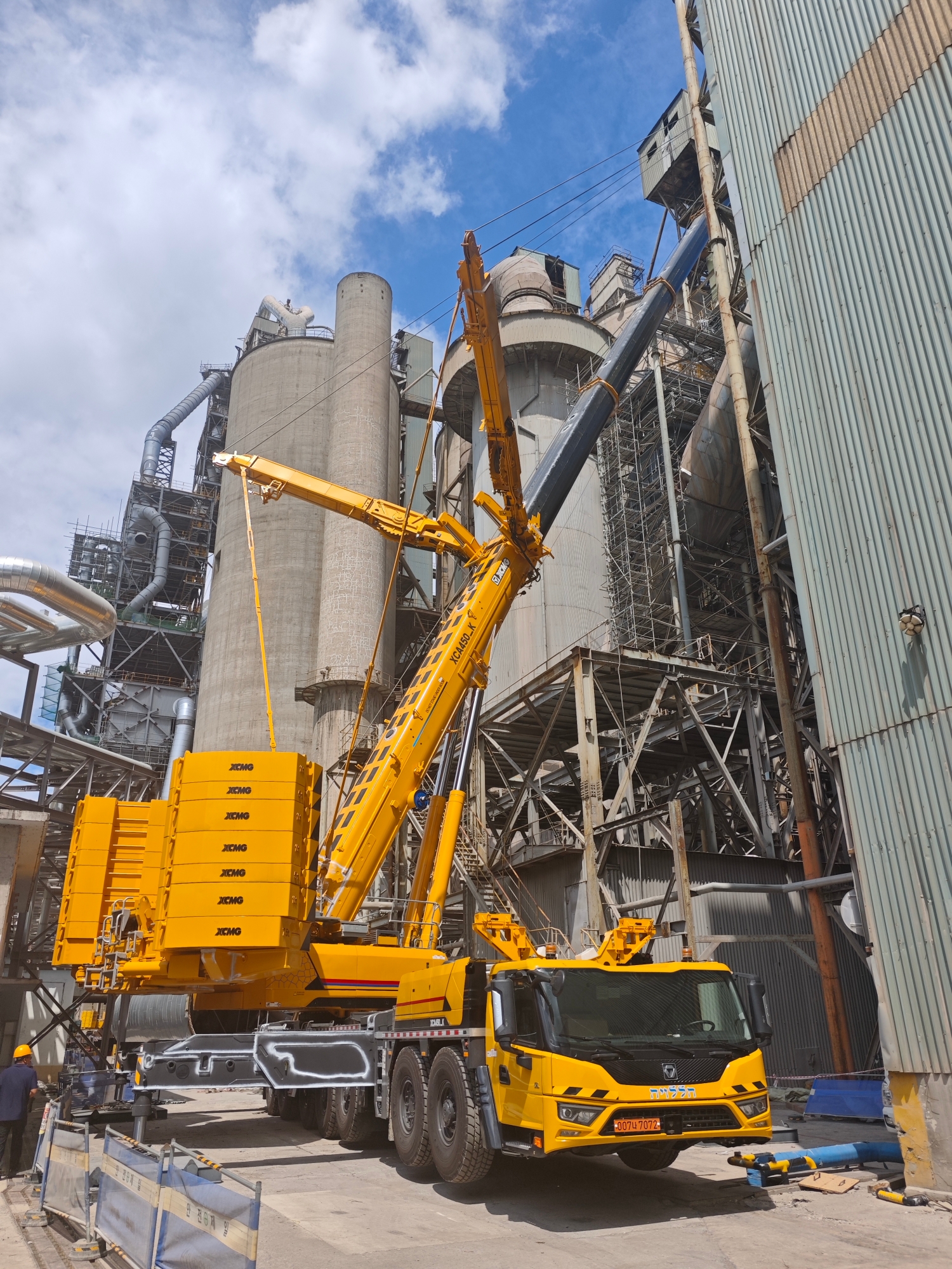 在现代大型水泥厂的建设与升级改造中,设备安装往往是决定工程进度的关键环节,近日,在某现代化水泥厂施工现场 金牌影院,一台徐工XCA450_K全地面起重机凭借其卓越性能,成功完成了一项超起工况下的高难度吊装任务,为项目的顺利推进提供了坚实保障。