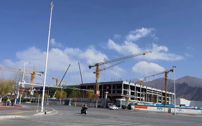 该项目背后意义重大,但是施工难度也超出预期,为确保如期完成建设任务 金牌影院,客户钦点多台徐工XGT8022-20S,XGT7022-12S 塔机进驻海拔3600米的恶劣现场接受挑战,实地作战中,徐工设备优异的产品性能和施工表现被客户评为“优秀作业”。