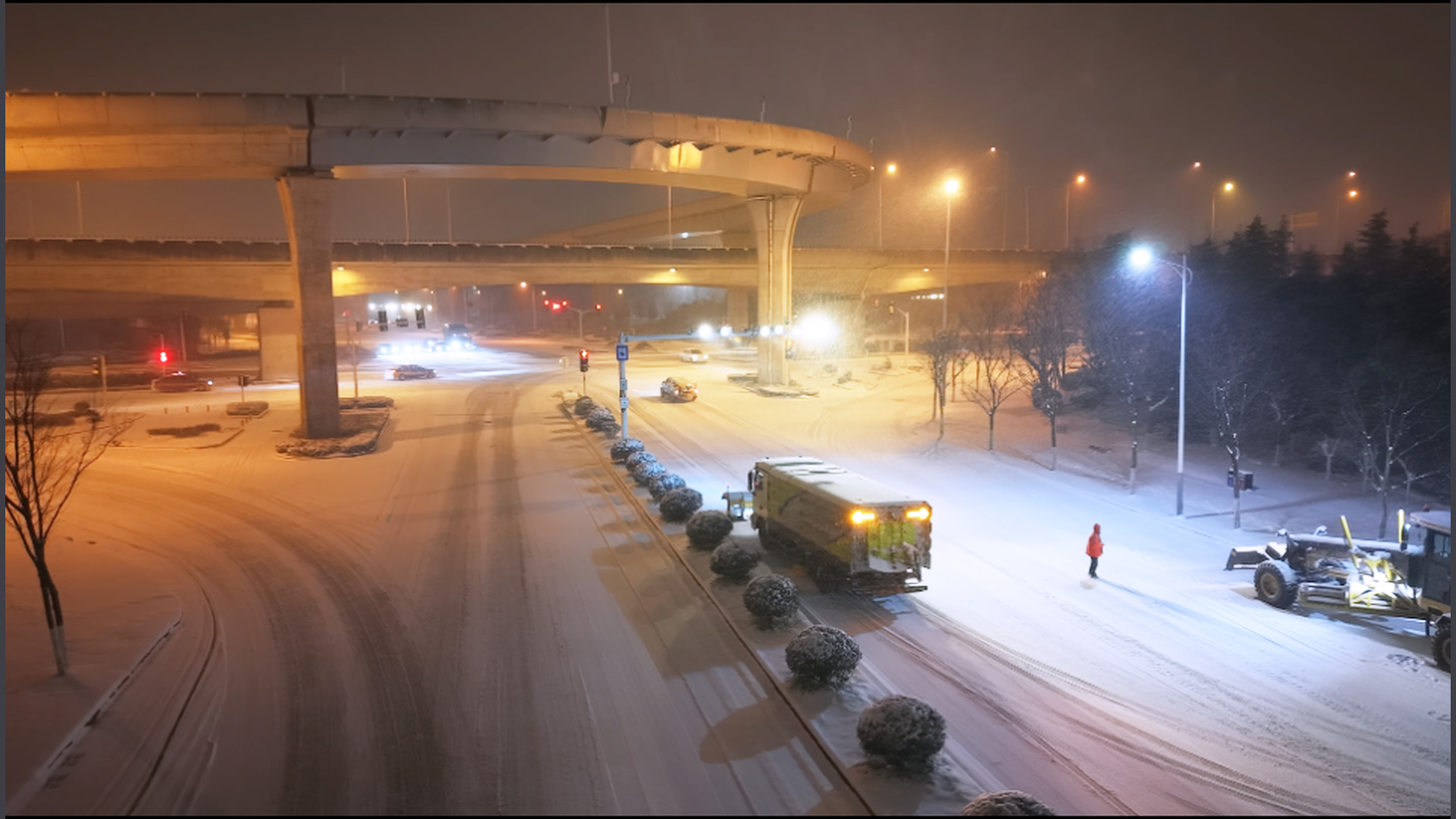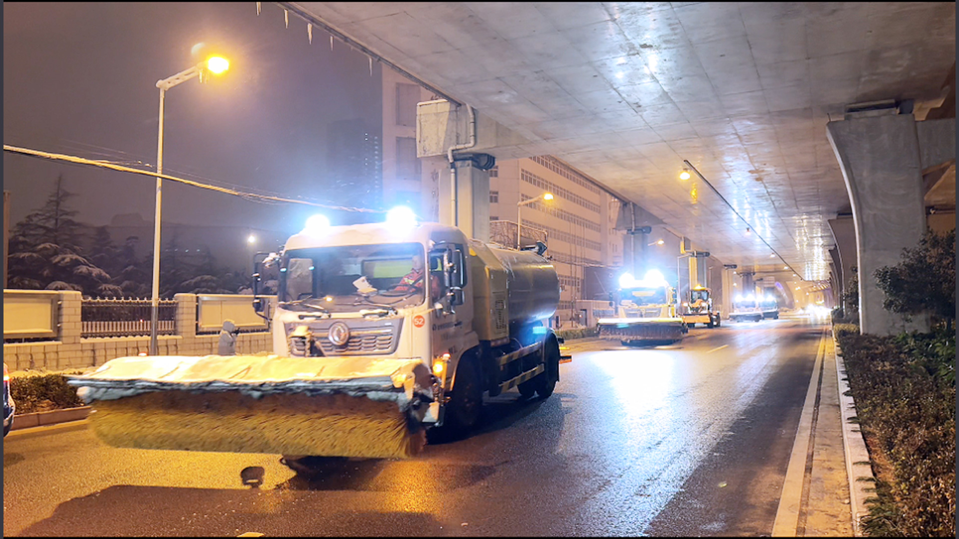1月20日0点,徐工除雪设备和救援队在徐州东三环快速路集结,对整条三环高架道路除雪 金牌影院,保障清晨的正常通行。