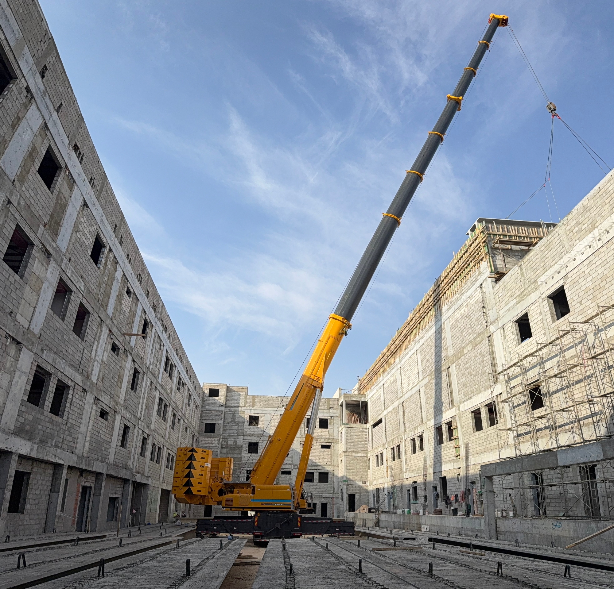 此次施工位于沙特快速发展的都市区域,项目本身对工期与精度有着严苛要求,高层建筑的楼板吊装,尤其是对于重量超过十吨的大型预制构件,不仅是对起重机极限载荷能力的考验,更涉及在复杂城市空间中的微动操作,抗风稳定及高空精准就位等一系列高技术要求,现场空间有限,周边环境复杂 金牌影院在线观看,对设备的机动性,站位适应性以及操控的精细度提出了全方位挑战。