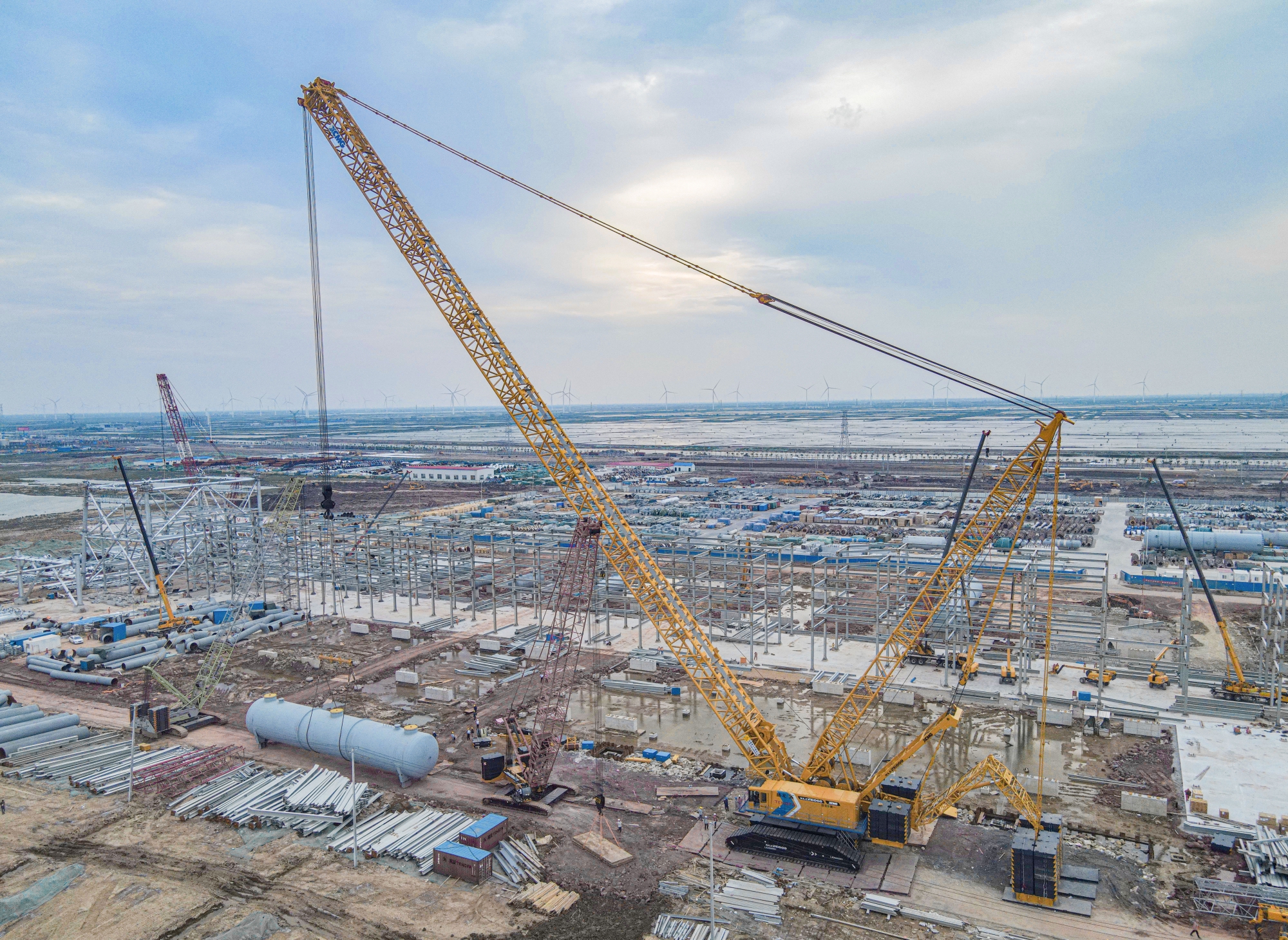 近日,徐工XLC26000履带起重机,于连云港某石化建设项目顺利启用并完美首秀 金牌影院,在滨海云天的映衬下,钢筋铁骨的徐工金成为一道壮美的风景线。